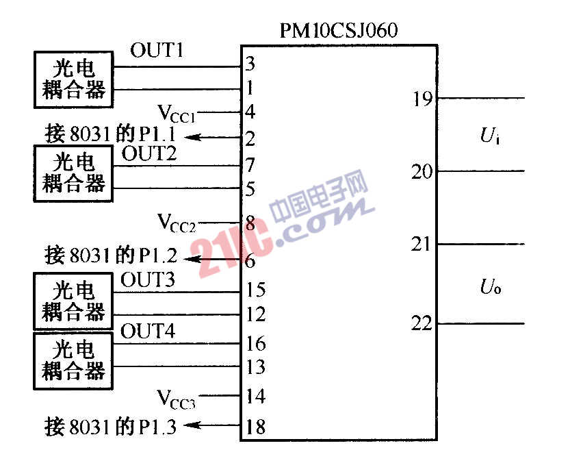 PWM信號與IPM智能功率模塊PM10CSJ060的連接: