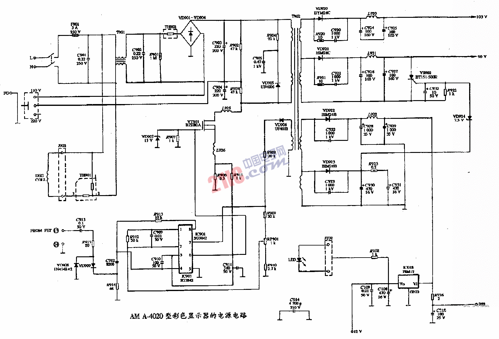 AM A-4040型彩色顯示器的電源電路圖