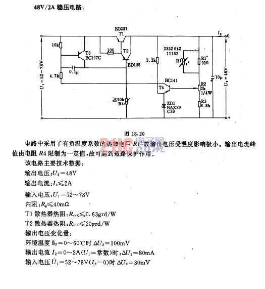 具有自動恢復(fù)功能的穩(wěn)壓器電路原理如下圖所示。在負(fù)載出現(xiàn)短路故障時,輸出電流不完全切斷,即有一定的電流繼續(xù)通過調(diào)整管,這個電流在故障消除以后能使穩(wěn)壓