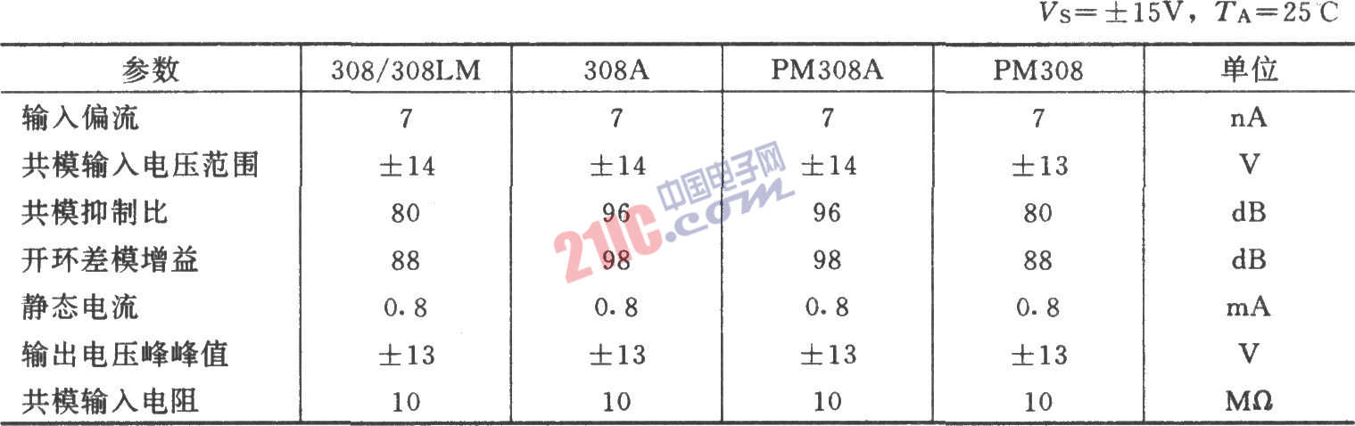 308集成運(yùn)放的主要參數(shù)(典型值):