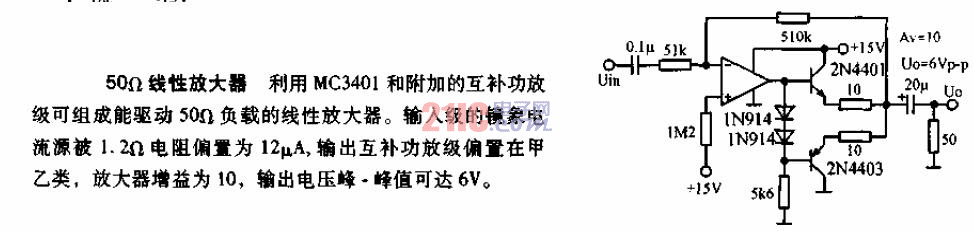 該電路是用于一個(gè)電壓式轉(zhuǎn)換器的高輸入阻抗交流放大器。輸入電阻是880M,可得到的增益是10。