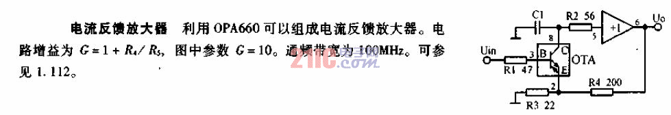 電流反饋放大器不受基本增益帶寬積的限制,隨著信號幅度的增加,帶寬的損失非常小。因為可以在最小失真的條件下對大信號進行調節(jié),這些放大器在非常高的頻率下通常都具有優(yōu)