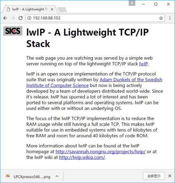 LPCXpresso54608板上集成了網(wǎng)絡(luò)通信功能,SDK中也提供了大量的示例代碼供用戶參考。這些例程位于lwip目錄下,打開lwip_httpsrv工程文件,在lwip_httpsrv_bm.c文件中看到如下代碼