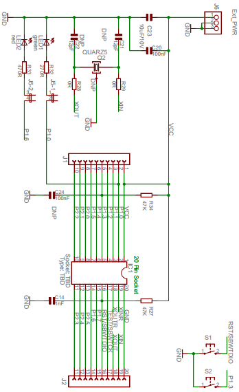 MSP-EXP430G2原理圖較為簡單,幾乎是一目了然.其實主要是調(diào)試器部分,比起要評估的MSP430-G2xx系列的要復雜許多.