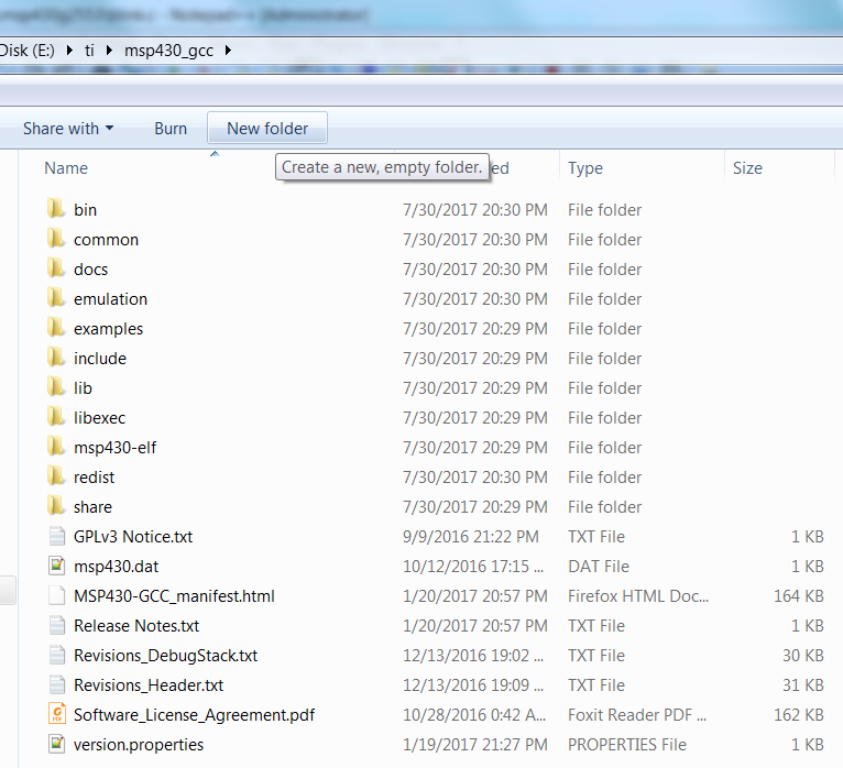 圖 MSP430 GCC安裝好的目錄