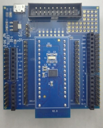 值得注意的是,為了防止板子被插反,在Shuttle Board上設(shè)置了兩個缺失的針腳,Application Board上有兩個缺失的插座孔,這樣的細節(jié)也是值得稱贊的,如下圖: