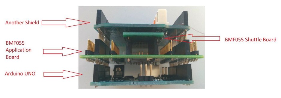 Application Board可以擴展其他的Arduino擴展板,連接方法如下圖: