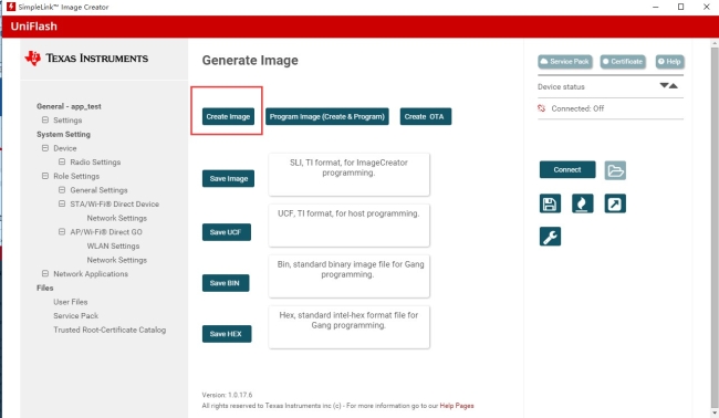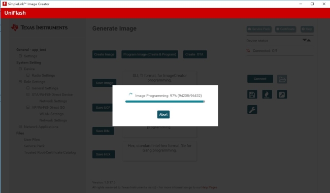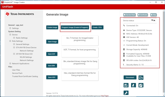 連接上板子,點擊Program Image(Create & Program)。