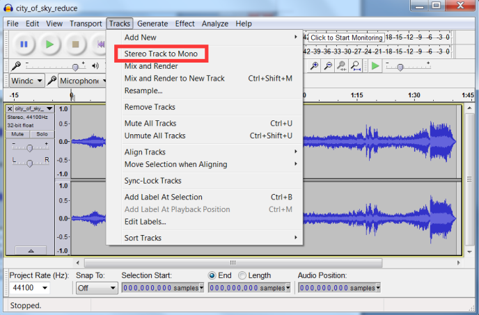 上面顯示的是兩通道, 首先合并為單通道. 因?yàn)榘遄由现挥幸宦稤AC, 不合并也可以, 只是要改庫(kù)函數(shù)稍稍麻煩, 這里合并一下子以求簡(jiǎn)潔.