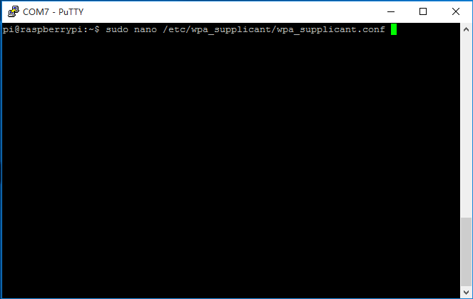 修改網(wǎng)絡(luò)配置文件,在命令行輸入sudo nano /etc/wpa_supplicant.conf,用樹莓派預(yù)裝的nano編輯器,用root權(quán)限編輯 。