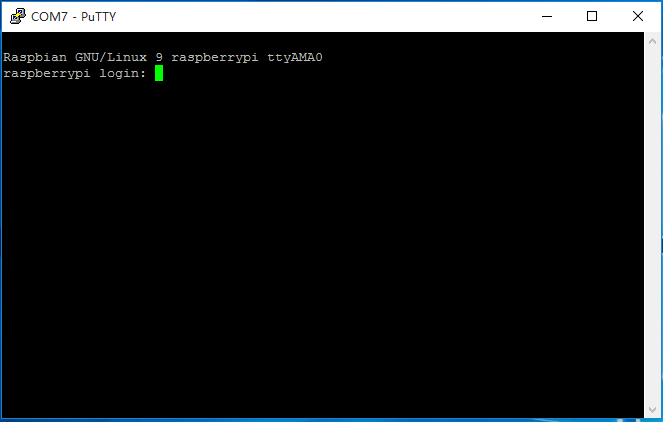 上電之后,需要等待系統(tǒng)啟動(dòng)(PS:啟動(dòng)過程沒有信息打出來,千萬別以為出什么問題了,確定好連線),等待時(shí)間大概2分鐘,之后就能打印出登陸提示了,輸入默認(rèn)賬號(hào)密碼就能登陸了,默認(rèn)賬號(hào)pi,密碼rapsberry。