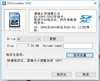 先用SDFormatterr格式化TF卡。