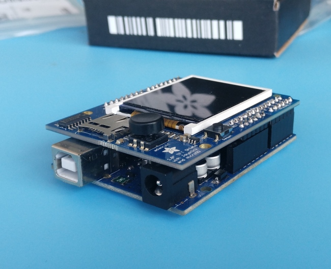 如果說Adafruit 1.8 TFT Shield與NUCLEO 144的合照是小鳥依人的話,那么Adafruit 1.8 TFT Shield與Arduino的合照可以說是珠聯(lián)璧合。
