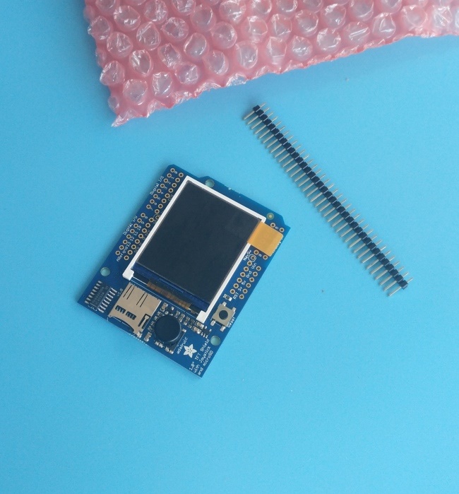 包裝盒內(nèi)含擴(kuò)展板一塊,就是Adafruit 1.8 TFT Shield,另外還提供了排針x1,默認(rèn)沒有焊接,正式體驗(yàn)之前還得先把它焊接好。由于擴(kuò)展板上包含LCD,所以使用了厚厚的防震泡沫進(jìn)行了包裝。