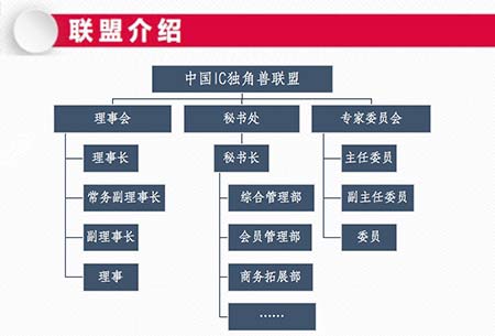 聯(lián)盟名稱為中國(guó)集成電路( IC)獨(dú)角獸(企業(yè))聯(lián)盟,簡(jiǎn)稱中國(guó) IC獨(dú)角獸聯(lián)盟。聯(lián)盟為行業(yè)性組織,內(nèi)部實(shí)行民主管理機(jī)制。