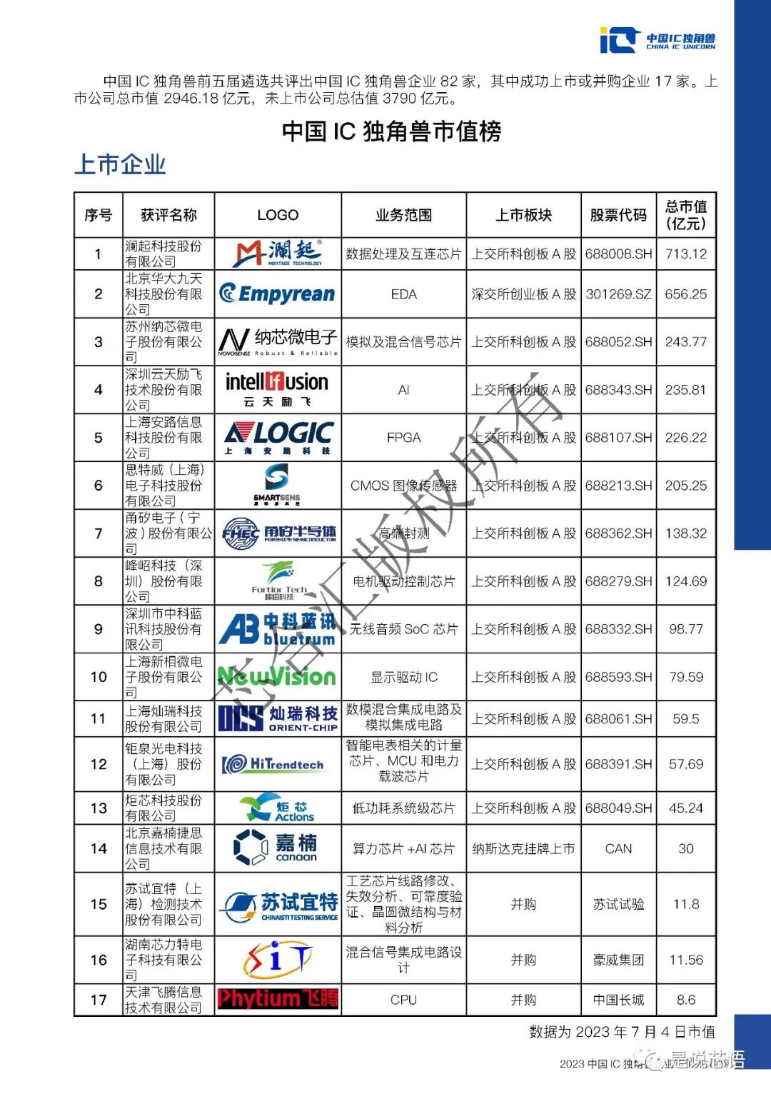 中國IC獨角獸聯(lián)盟正式發(fā)布"2023中國IC獨角獸企業(yè)估值榜"。