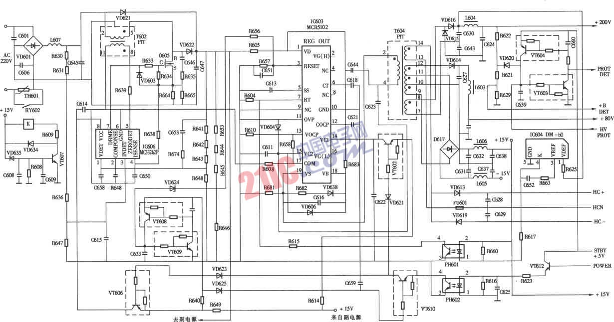 索尼GDM-400PS/F400型彩顯開(kāi)關(guān)電源(MC33262p) 電路
