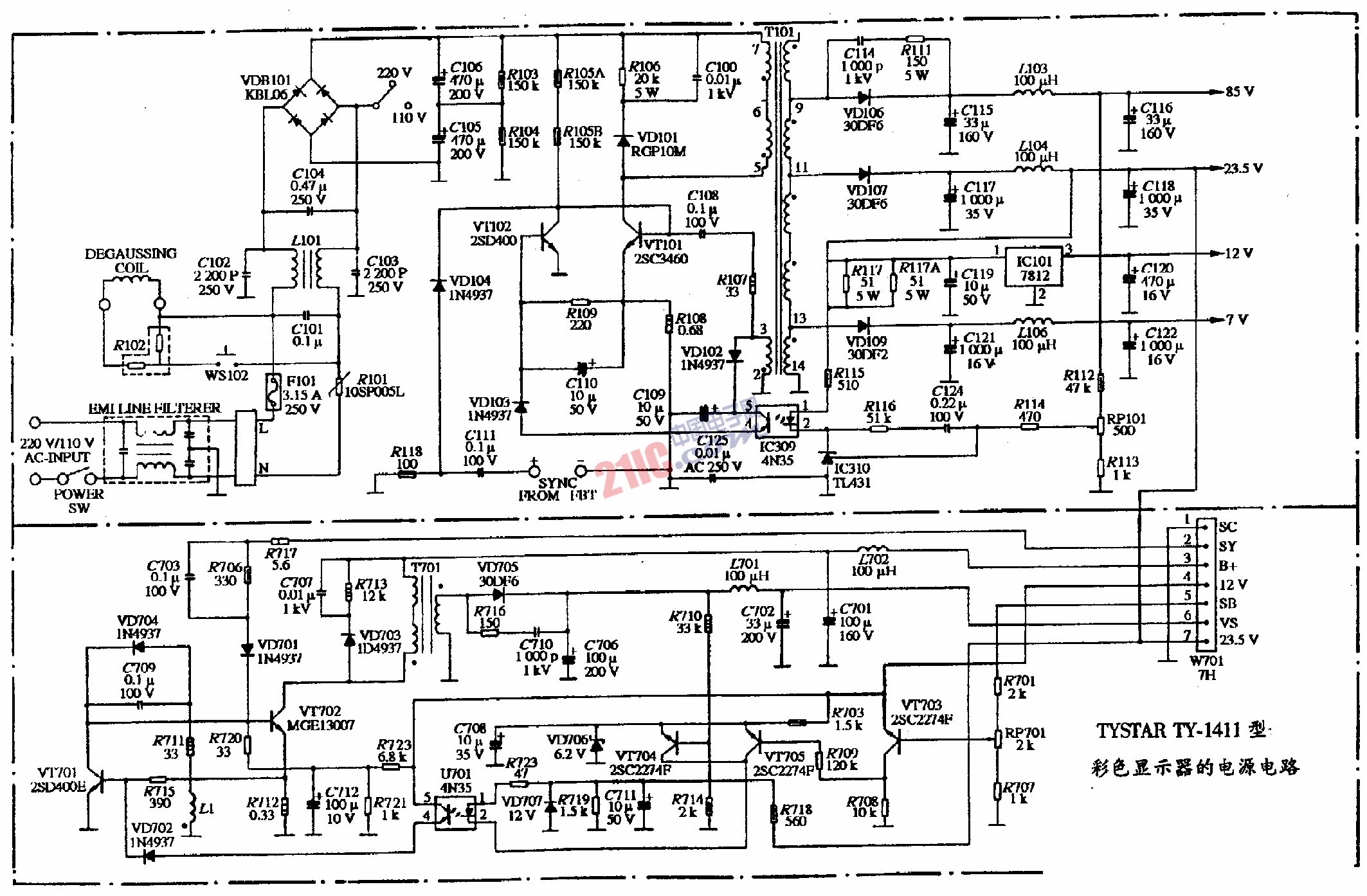 TYSTAR TY-1411型彩色顯示器的電源電路圖