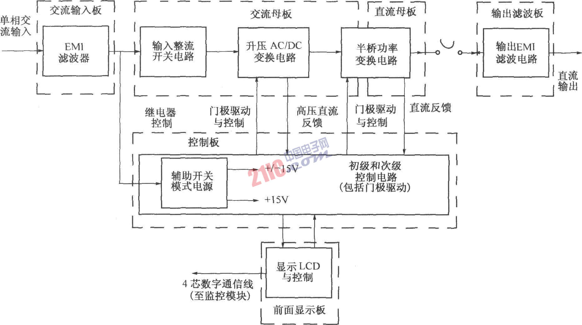 同DMA10型整流模塊相比較,DMA12型整流模塊在工作頻率的選擇和功率變換的拓撲結(jié)構(gòu)是一樣的。不同的是,DMA12采用的是單相有源升壓功率因數(shù)校正方式和自然冷卻,并運用無損耗吸收技術(shù)。如圖為其功能圖. DMA12型整流模塊的48V電源系統(tǒng),容量為50A,目前構(gòu)成的典型系統(tǒng)為DUM23系列組合電源系統(tǒng)。48V/50A整流模塊技術(shù)指標如下表: