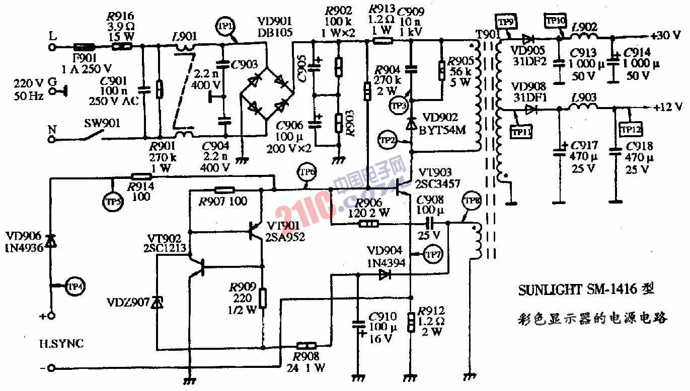 SUNLIHTSM-1416型彩色顯示器的電源電路