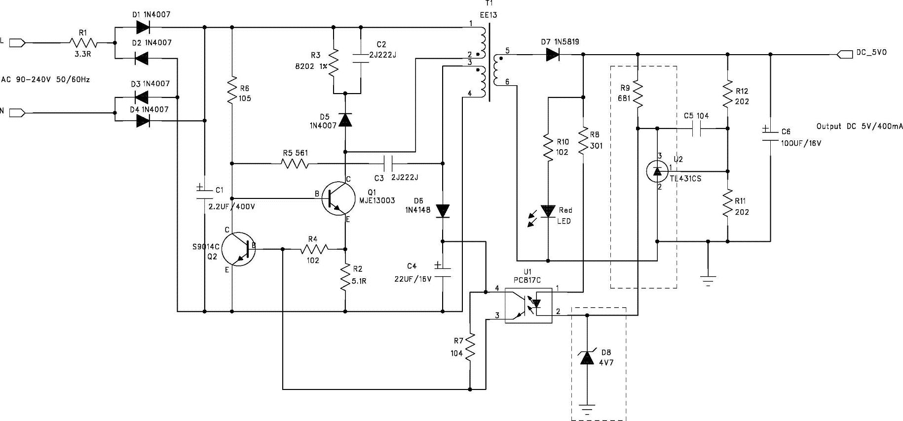 <strong>RC</strong>C 5V/400mA <strong>開關(guān)電源電路</strong>
