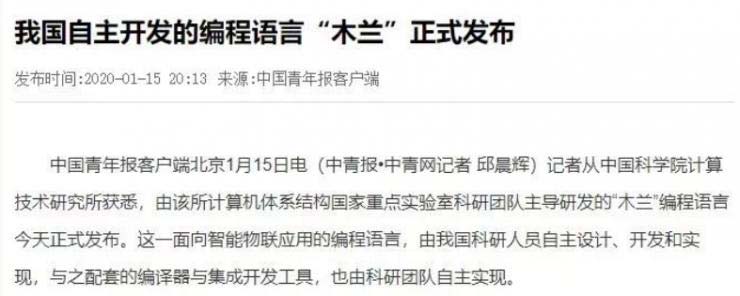 最近‘木蘭’編程語言火了,先是有多家媒體報道,它是一款自主開發(fā)的編程語言,是由中科院計算機體系結(jié)構(gòu)國家重點實驗室科研團隊主導(dǎo)研發(fā),一時之間,大大滿足了廣大群眾對于擁有這種基礎(chǔ)科學核心技術(shù)的自主研發(fā)能力的信心爆棚。