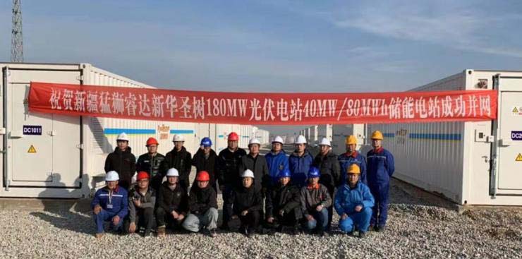 猛獅科技-新華圣樹光伏儲能聯(lián)合運營項目位于新疆和田市墨玉縣,電站采用磷酸鐵鋰電池系統(tǒng),共用61個儲能集裝箱,通過兩回相互獨立35KV集電線路匯接入新華圣樹光伏電站110KV升壓站35KV母線。項目從2019年10月開工建設(shè),項目組克服天氣、運輸、建設(shè)等方面的重重困難,歷時短短62天完成了項目施工建設(shè)、設(shè)備集成交付、調(diào)試并網(wǎng)等一系列工作。該儲能項目并網(wǎng)投運后,可起到平滑光伏電站出力、調(diào)峰移荷、增加光伏發(fā)電小時、提高供電可靠性等作用,為和田地區(qū)供電、冬季采暖等提供保障。