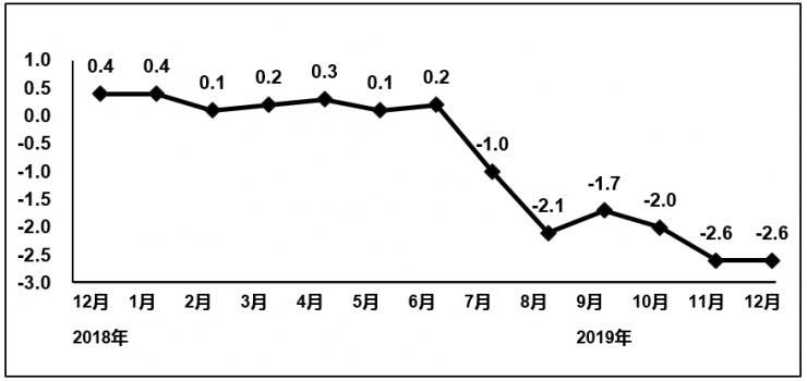 2019年,電子信息制造業(yè)生產(chǎn)者出廠價(jià)格同比下降0.9%。12月份,電子信息制造業(yè)生產(chǎn)者出廠價(jià)格同比下降2.6%,降幅與上月持平。