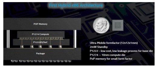 使用Foveros工藝的第一個產(chǎn)品在架構(gòu)日上進(jìn)行了演示,如下圖: