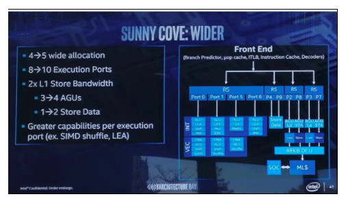 但略有遺憾的是,英特爾目前給出的信息還不完整,主要只是介紹了Sunny Cove架構的后端設計細節(jié),不涉及指令分派、指令隊列等前端部分。