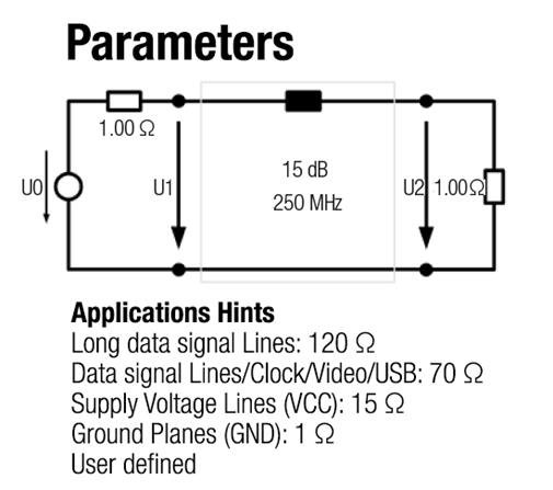 輸入您想要的衰減和頻率值,將根據(jù)系統(tǒng)模型計(jì)算推薦合適的鐵氧體和共模扼流圈。