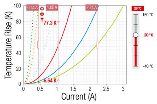考慮環(huán)境溫度的溫升與直流電流圖