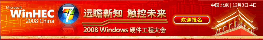 今年以“遠(yuǎn)瞻新知,觸控未來”為主題,微軟下一代操作系統(tǒng)Windows 7將在WinHEC 2008 China上首次揭秘!