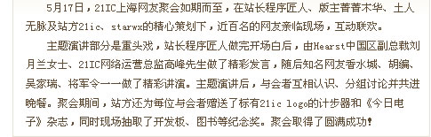 參會(huì)網(wǎng)友們,讓我們?cè)诖斯餐仡櫖F(xiàn)場(chǎng)的精彩瞬間。同時(shí)對(duì)于此次網(wǎng)友聚會(huì),不論您是否親臨現(xiàn)場(chǎng),都請(qǐng)將您的意見或建議寫在這里,以助今后的聚會(huì)舉辦的更加豐富、精彩。