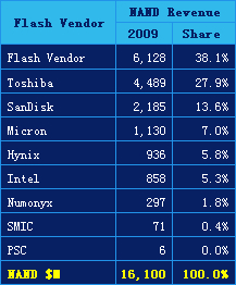 三星電子(Samsung)是極少數(shù)2009年的營(yíng)收仍呈增加的廠商之一。部份原因是其主要產(chǎn)品─DRAM和NAND 閃存的營(yíng)收于
