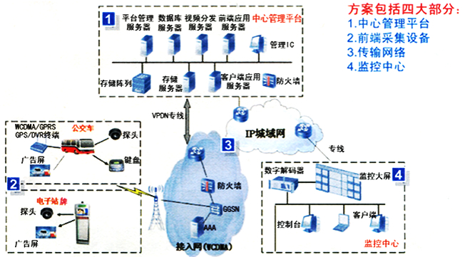 智能公交系統(tǒng)解決方案主要包括四個(gè)部分: