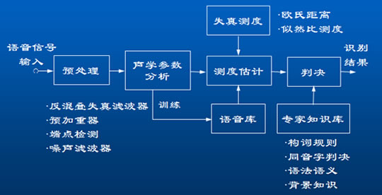 模板匹配的方法發(fā)展比較成熟,目前已達到了實用階段。在模板匹配方法中,要經(jīng)過四個步驟:特征提取、模板訓(xùn)練、模板分類、判決。常用的技術(shù)有三種:動態(tài)時間規(guī)整(DTW)、隱馬爾可夫(HMM)理論、矢量量化(VQ)技術(shù)。