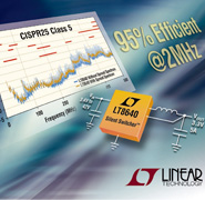 - LT8640采用獨特的 Silent Switcher® 架構,整合了擴展頻譜調(diào)制,即使開關頻率超過 2MHz 時,依然能夠?qū)?EMI / EMC 輻射降低超過 25dB,從而使該器件能夠輕松地滿足汽車 CISPR25 Class 5 峰值限制要求。同步整流在開關頻率為 2MHz 時可提供高達 95% 的效率。其 3.4V 至 42V 輸入電壓范圍使該器件非常適合汽車和工業(yè)應用。 LT8640 的內(nèi)部高效率開關可向低至 0.97V 電壓提供高達 5A 連續(xù)輸出電流和 7A 峰值負載電流。該器件的突發(fā)模式 (Burst Mode®) 工作可在無負載備用情況下保持靜態(tài)電流低于 2.5μA,從而非常適合汽車"始終保持接通"系統(tǒng)等應用,因為這類應用需要延長電池工作壽命。
