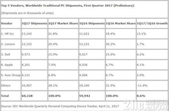 IDC最新的統(tǒng)計顯示,聯(lián)想在今年第一季度,已經(jīng)失去了全球PC老大的位置被惠普反超,盡管另外一家市場統(tǒng)計機構(gòu)Gartner的統(tǒng)計認(rèn)為聯(lián)想依舊是全球PC市場的第一,但我們看到的共性的是,聯(lián)想在PC市場的增速已經(jīng)連續(xù)多個季度低于競爭對手惠普和戴爾(IDC統(tǒng)計顯示,今年第一季度聯(lián)想PC出貨量僅同比增長1.7%,遠(yuǎn)低于惠普的13.1%和戴爾的6.2%,甚至還不及一直處在下滑的Acer的2.9%的增長率)。