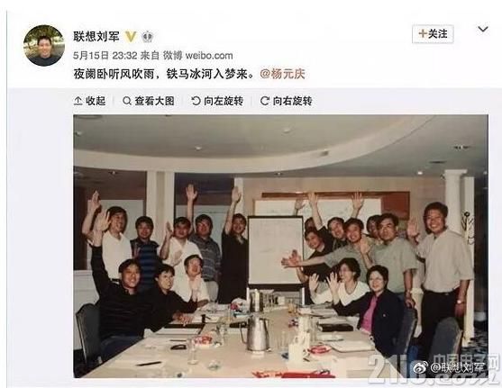 5月15日,劉軍微博發(fā)文:「夜闌臥聽風(fēng)吹雨,鐵馬冰河入夢來。」微博所附圖是2000年美國圓石灘會議時,立下10年成就國際化的夢想。此時,距離劉軍離開聯(lián)想已整整兩年。但他的微博名依舊是「聯(lián)想劉軍」,微博認(rèn)證里依舊有「聯(lián)想」的字樣。這也說明,劉軍是懷舊的,對聯(lián)想的感情也一直在。