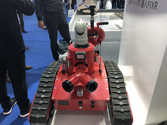 大華展臺(tái)這次帶來(lái)了是一款貨真價(jià)實(shí)的巨無(wú)霸,這款智能排煙滅火機(jī)器人長(zhǎng)2.3米、款1.6米、高2.2米、2.3噸重.小編剛到展臺(tái)便被這款巨無(wú)霸吸引住了眼球,在下部車上架著的是一個(gè)沖天的巨型水炮,這款機(jī)器人具備排煙、滅火、送風(fēng)、降溫、除塵、環(huán)境氣體檢測(cè)、遠(yuǎn)程圖像采集等功能。并在滅火上實(shí)現(xiàn)了智能化操作,實(shí)現(xiàn)了水炮與熱成像系統(tǒng)的聯(lián)動(dòng),通過(guò)熱成像可快速定位火源位置并精準(zhǔn)的操作水炮進(jìn)行滅火操作,小編認(rèn)為,如果在火災(zāi)現(xiàn)場(chǎng)看到這樣的一個(gè)巨無(wú)霸的出現(xiàn),一定會(huì)安全感滿滿。