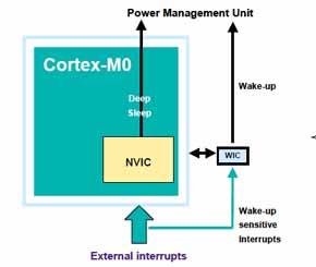 以不久前剛剛分銷上市的LPC1100系列32位MCU為例,其Cortex-M0內(nèi)核及系統(tǒng)架構(gòu)充分利用了當(dāng)今低功耗優(yōu)化設(shè)計(jì)工具、技術(shù)和最新的低功耗、高密度硅閃存工藝。LPC1100每秒4500多萬條指令的性能讓8位及16位微控制器相形見絀。實(shí)現(xiàn)該性能水平的LPC1100頻率為50MHz,憑借下圖所示的功率管理單元設(shè)計(jì),其功耗也得到了很大程度的優(yōu)化——僅需不到10mA的電流。