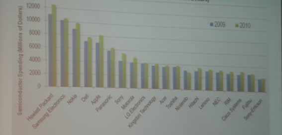 圖:全球20大OEM廠商2010年增加了對半導(dǎo)體的投入