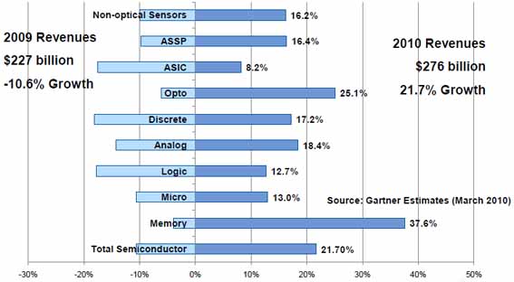 圖:Gartner預測2010年半導體行業(yè)營收增長達21.7%