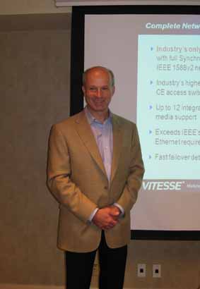 此前,我對Vitesse在中國市場的情況其實(shí)并不了解,不過,Gardner先生剛介紹完公司概況就亮出了華為的紅色LOGO。Gardner非常自豪的表示Vitesse在亞洲市場已經(jīng)有超過175家客戶了,亞洲區(qū)營收占總額的42%,華為不僅是其前10大客戶之一,Vitesse還先后兩次獲得了華為的“供貨支持獎”。