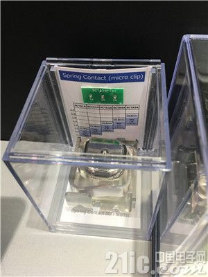 下圖是可穿戴接觸點(diǎn)的產(chǎn)品,現(xiàn)在手持移動(dòng)相關(guān)的產(chǎn)品用彈片式的接觸,這樣板與板之間滑動(dòng)變化的情況下會(huì)有一個(gè)緩沖。阿爾卑斯的是螺旋型的,上面有一個(gè)接觸點(diǎn),可以在360度受力的情況下都給一個(gè)緩沖,而且做得非常小,比彈片式的面積小很多。此產(chǎn)品已經(jīng)廣泛地被手機(jī)和可穿戴的設(shè)備廠商關(guān)注。