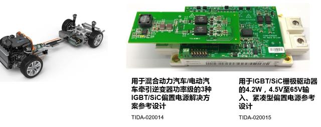 除此之外,TI還推出了兩款參考設(shè)計(jì):用于IGBT/SiC柵極驅(qū)動器 的4.2W,4.5V至65V輸入、緊湊型偏置電源參考設(shè)計(jì) (TIDA-020015)和用于混合動力汽車/電動汽 車牽引逆變器功率級的3種 IGBT/SiC偏置電源解決方 案參考設(shè)計(jì) (TIDA-020014)。