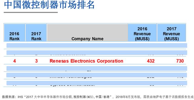 瑞薩微控制器中國市場排名前三